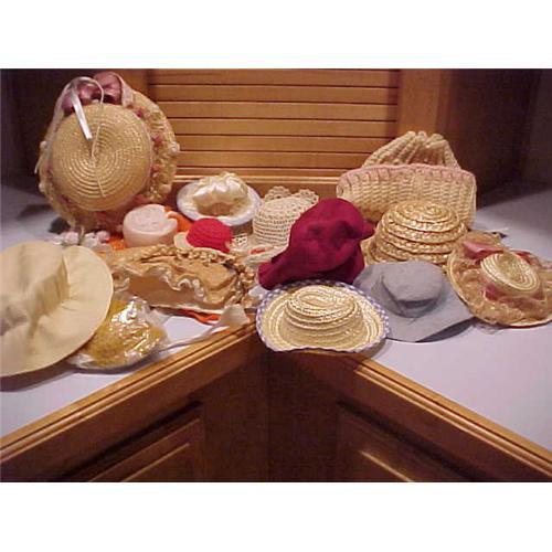 Many of these hats are forms to make a completed hat. They could be used for dolls and have anything added to make them attractive. Some are straw and some are felt and then there is a variety of others. Nothing is mint but are still very usable. Make an offer if not in an auction.