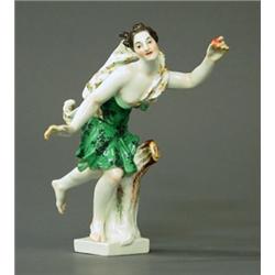 porcelain, Meissen, Germany, fleeing woman with the forbidden apple in her hand, polychrome and gilded decor, height 19 cm; repairs