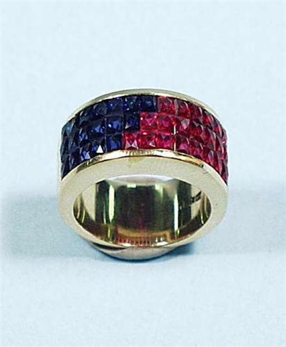 A fine 18 kt. gold, ruby and sapphire ring. D...