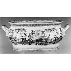 A fine 19th Century R.W. & B. Canton pattern 19.12in. two-handled foot bath with painted transfer Chinese landscape, figure and floral decoration; and a 15in. circular bowl to match (various chips and cracks). (2) See illustration £200-300