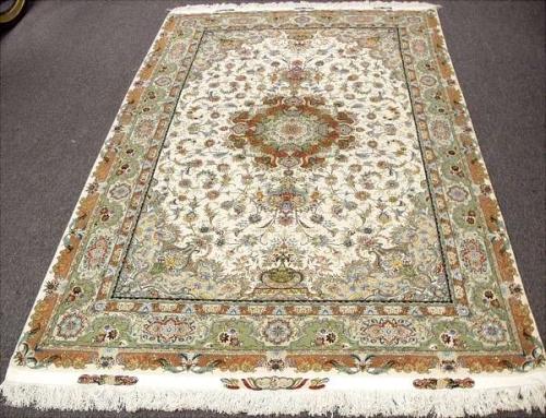 A fine Persian silk and wool carpet. Signed. Appx. size: 10' 7" x 6' 6". 14000-16000