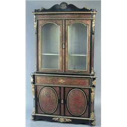 A fine mid 19th century French ebonised, boulle and ormolu mounted secretaire bookcase, by Diehl with two glazed doors flanked by caryatid mounts, frieze drawer with fitted interior of five drawers with diamond shape diaper inlaid fronts, lock plate engraved Diehl 19r Michelle Comte, Paris over two doors with oval panels flanked by caryatids on plinth base, width 4ft 3ins height 7ft 8ins £4,000-5,000