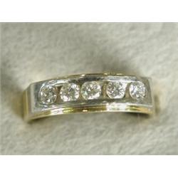 A five stone diamond ring, channel set in 18ct white gold to a yellow shank, size O (total approx 0.50ct) Est. 150/200