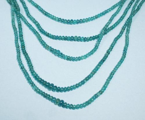 A five strand natural emerald bead necklace with 14 kt. yellow gold clasp.