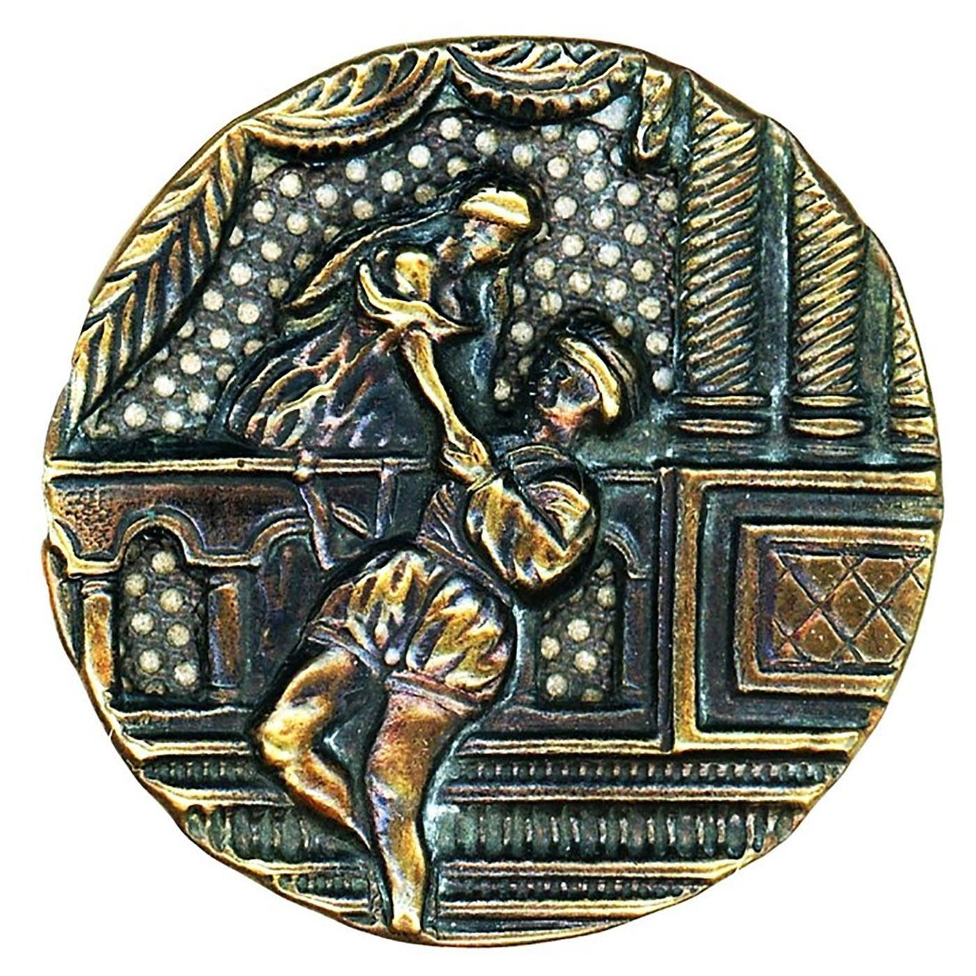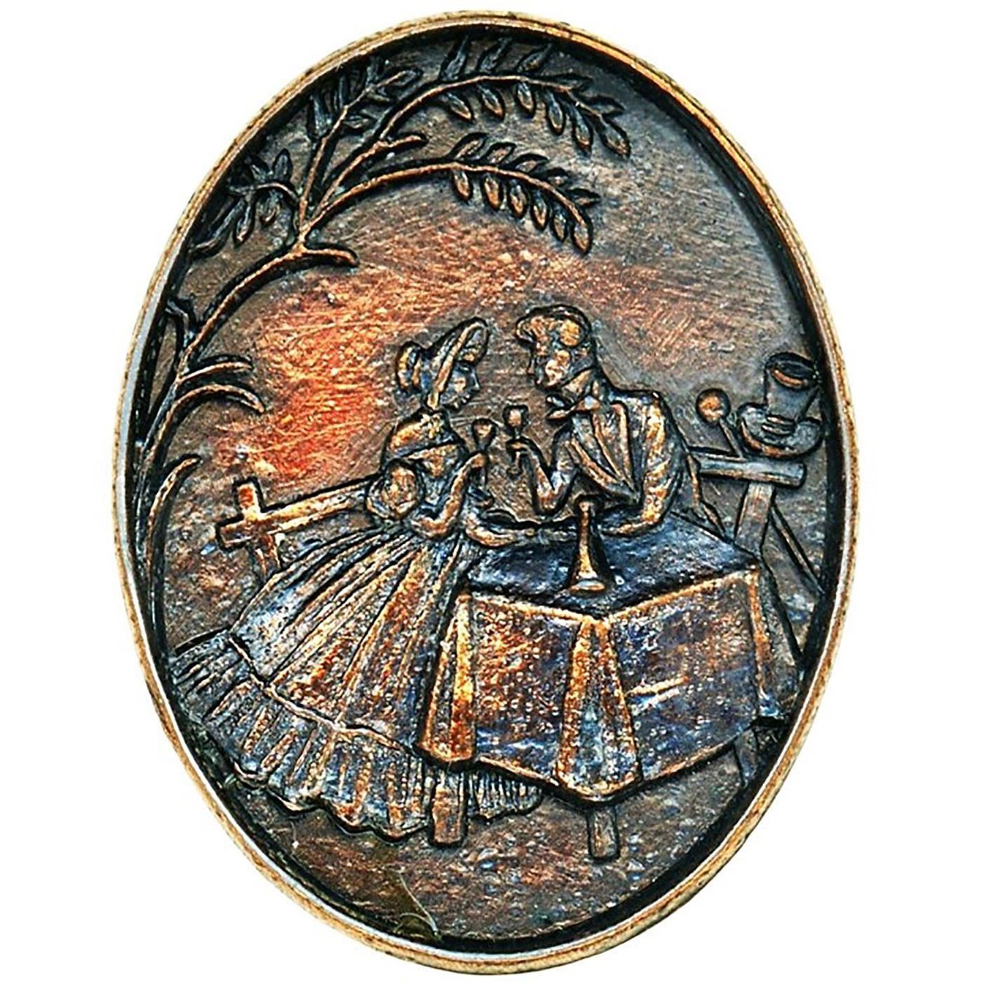 25 Medium/Large 19th-20th century assorted material examples. This card includes several assorted metal including a great and detailed oval copper, a screen background brass Romeo and Juliet along with lithos and porcelains and so much more.