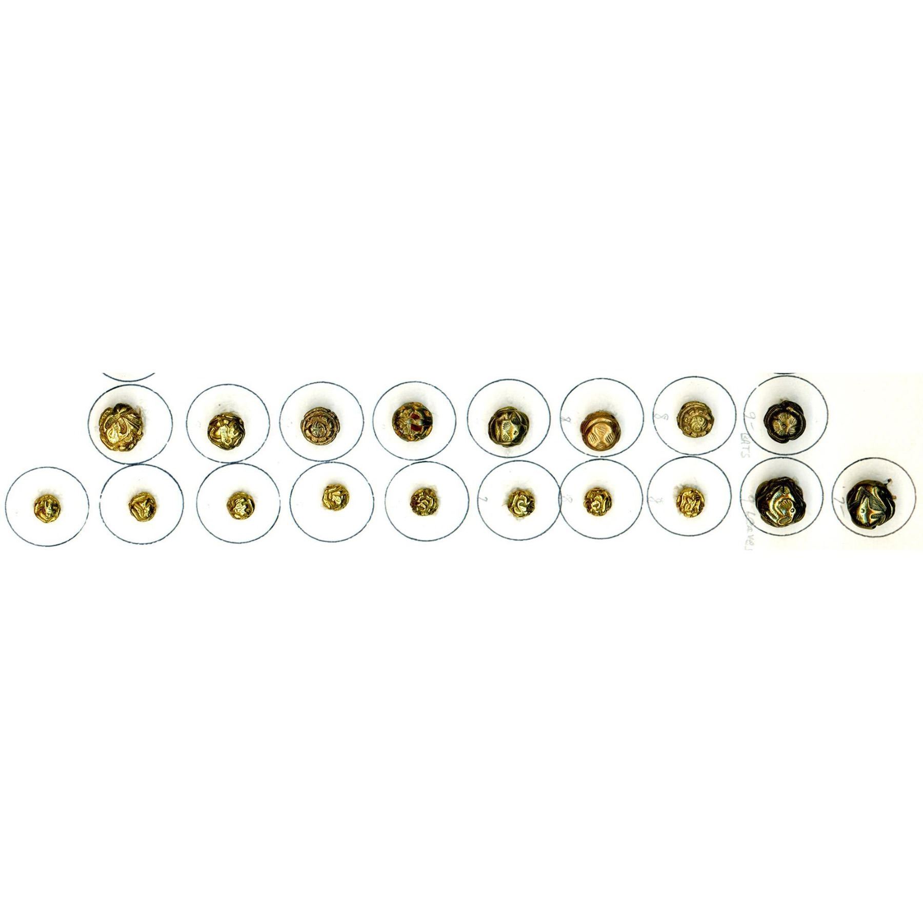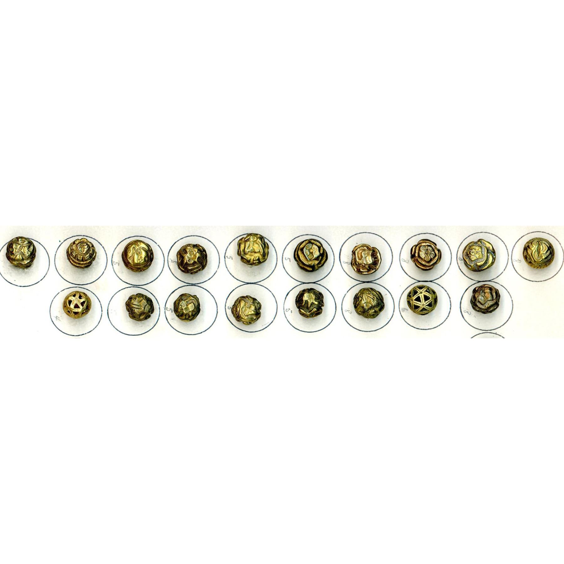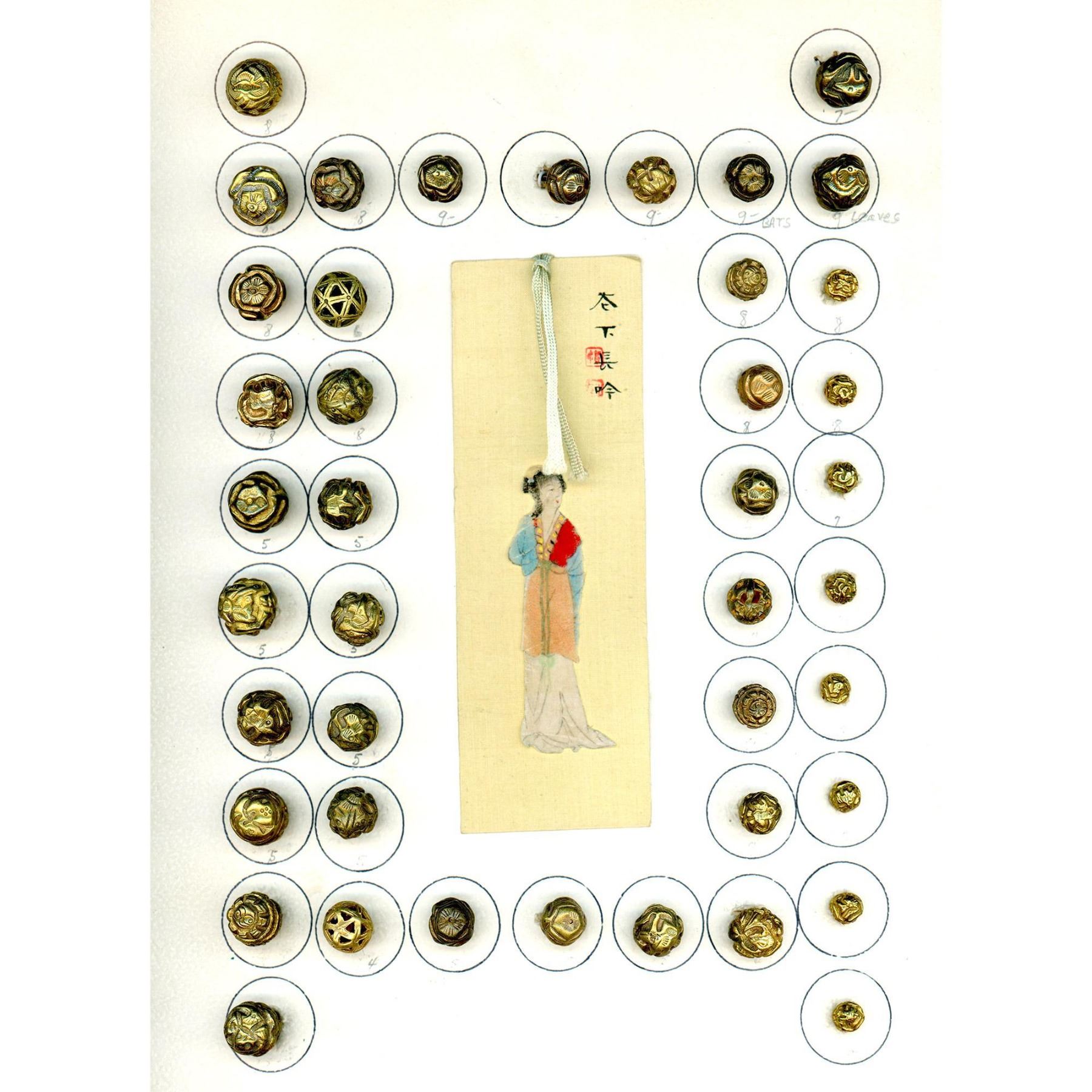 40 Small 19th century gilt Mandarin ball buttons. Here is another impressive card from the collection of the late Pauline Lum of California. To collect a card of 42 different patterned designs of these is not an easy task and now you can add this entire card to your collection without having to search for them yourself. Very nice indeed.