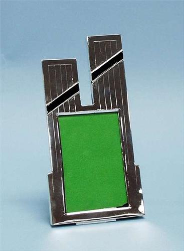 A geometrical design sterling silver easel picture frame with enamel decoration. Hallmarked. 3 1/2" x 7". 200-300