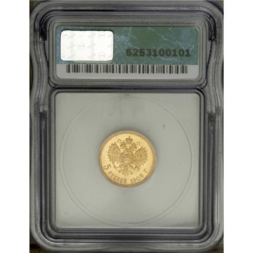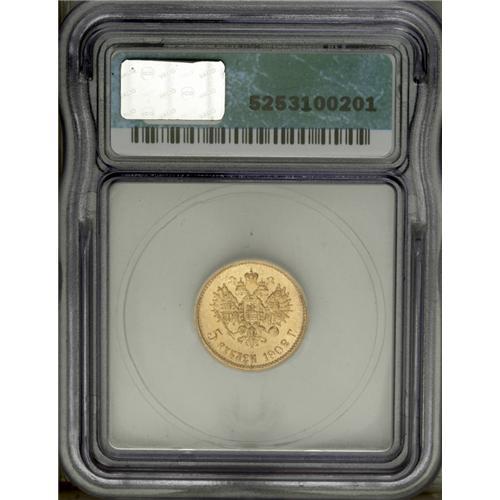A gold 5 Rouble trio as follows: (2)1902 AP, MS66 ICG;