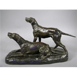 A good 19th century bronze by Eglantine Lemaitre entitled 'Au Coup De Fusil', modelled as two alert pointers, signed E.G. Lemaitre, circa 1890, with foundry marks, 27 x 44cm Est. 1200/1500