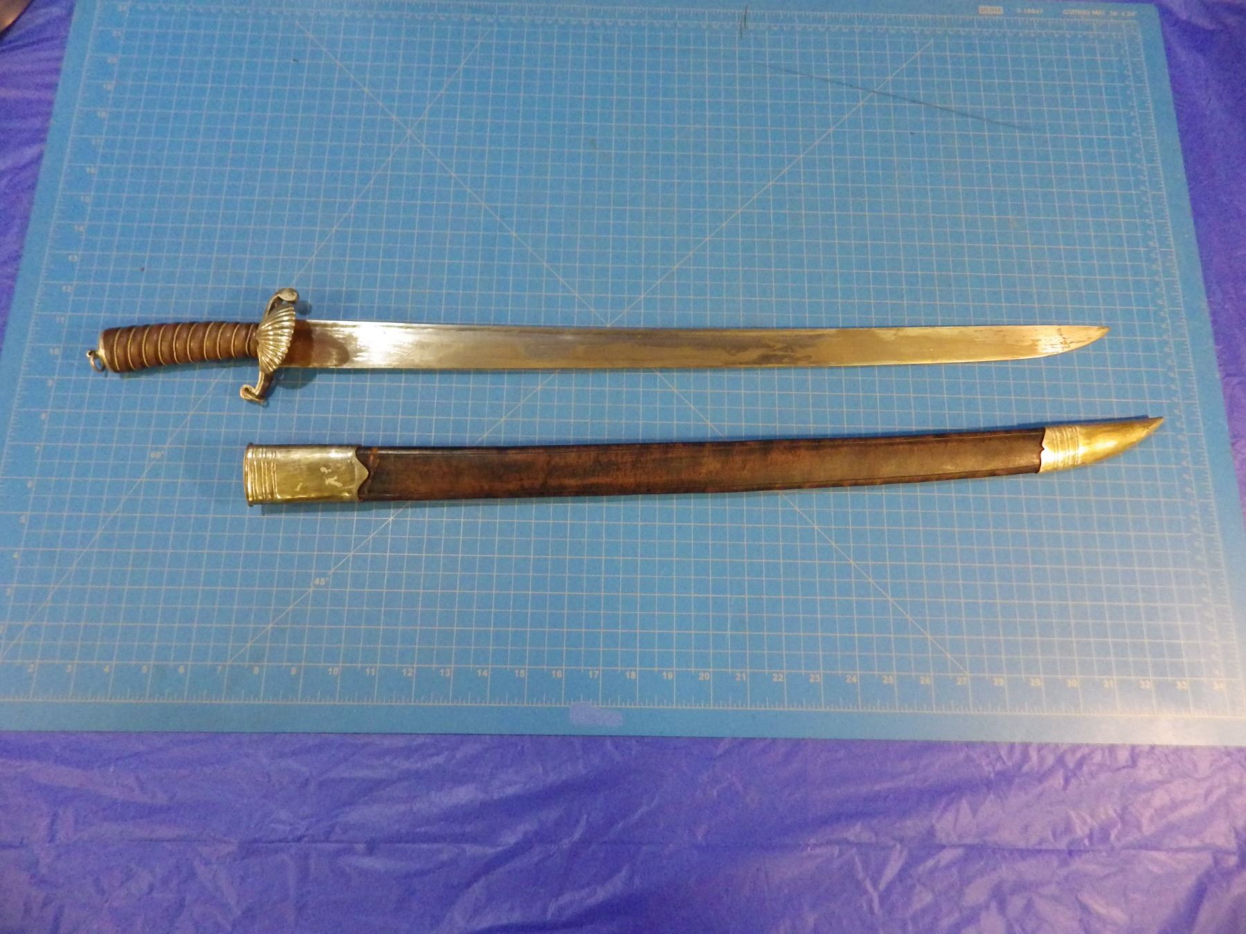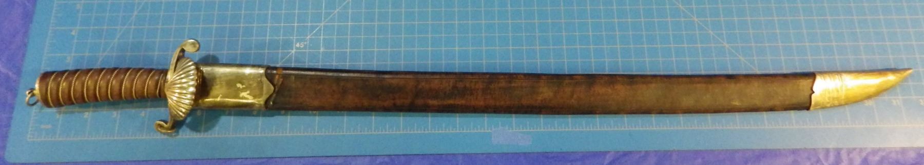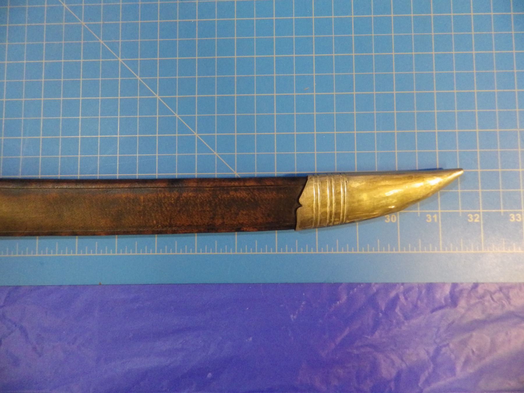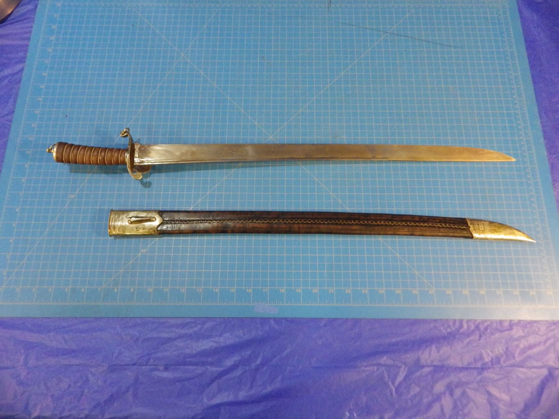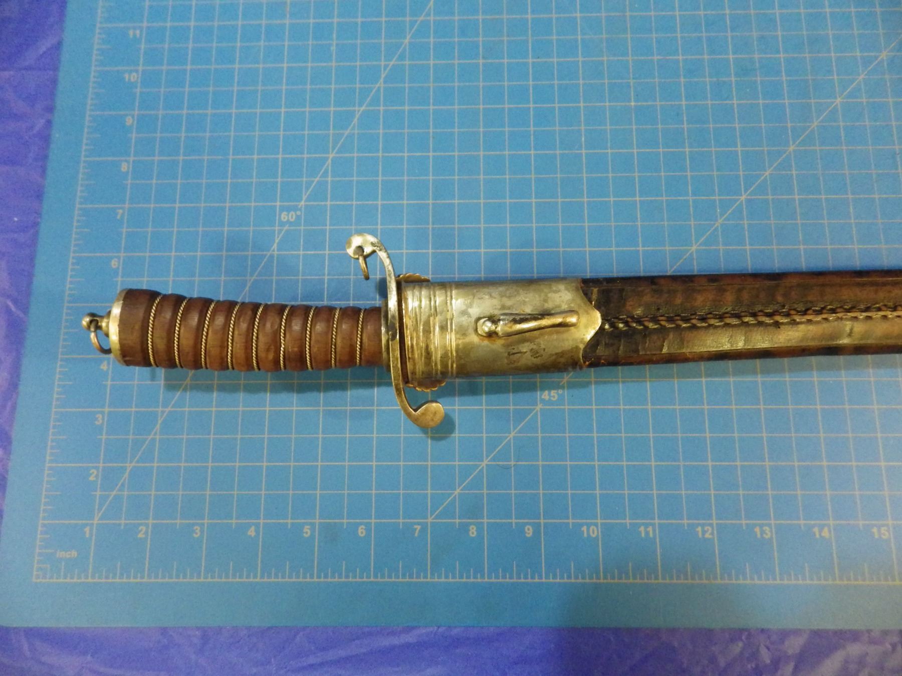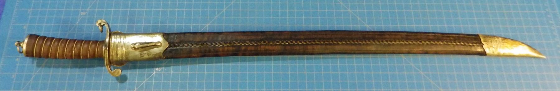 A good copy of a Revultinary War era Hanger or Hunting Sword, Scabbard altered for right hip