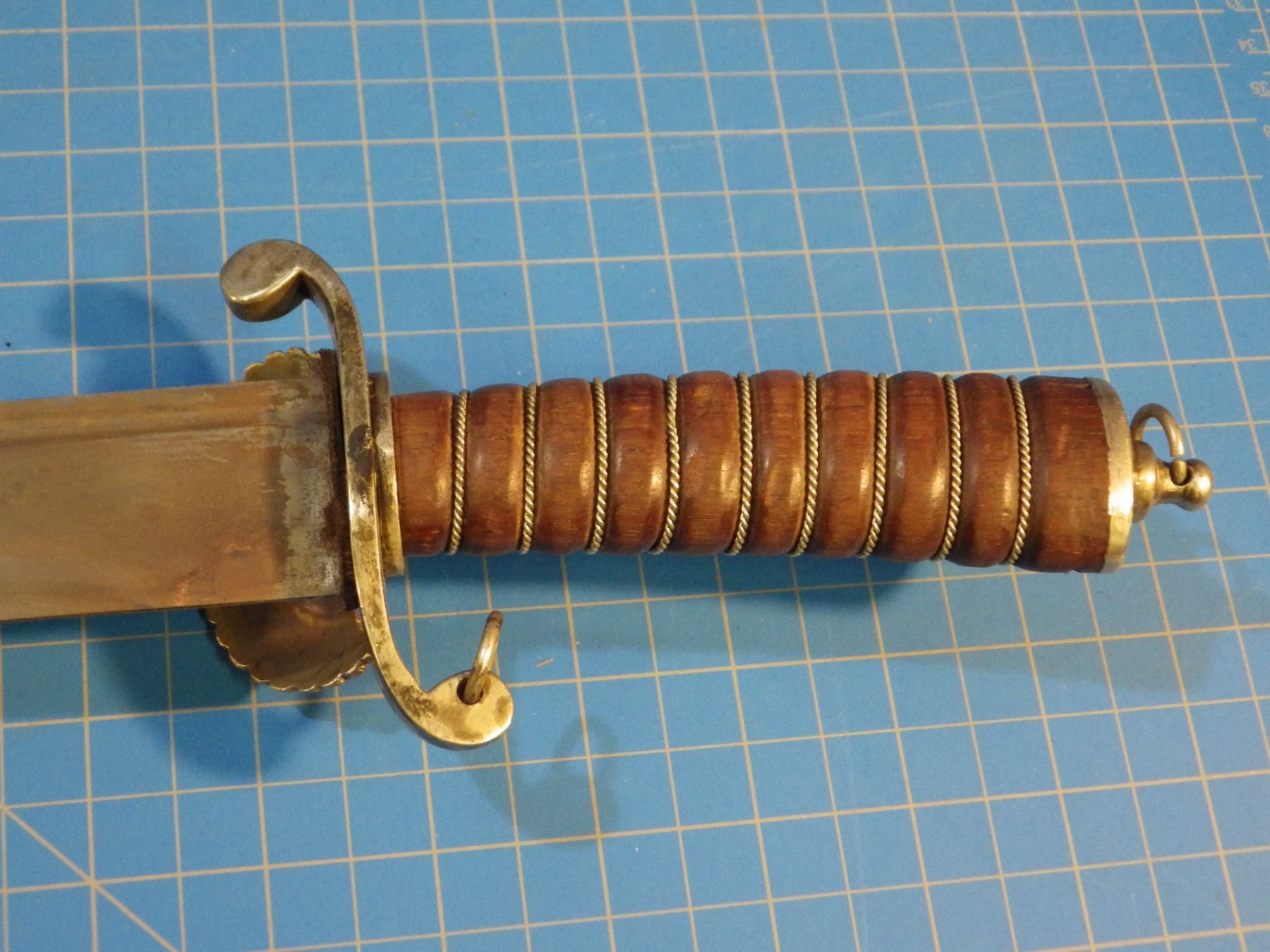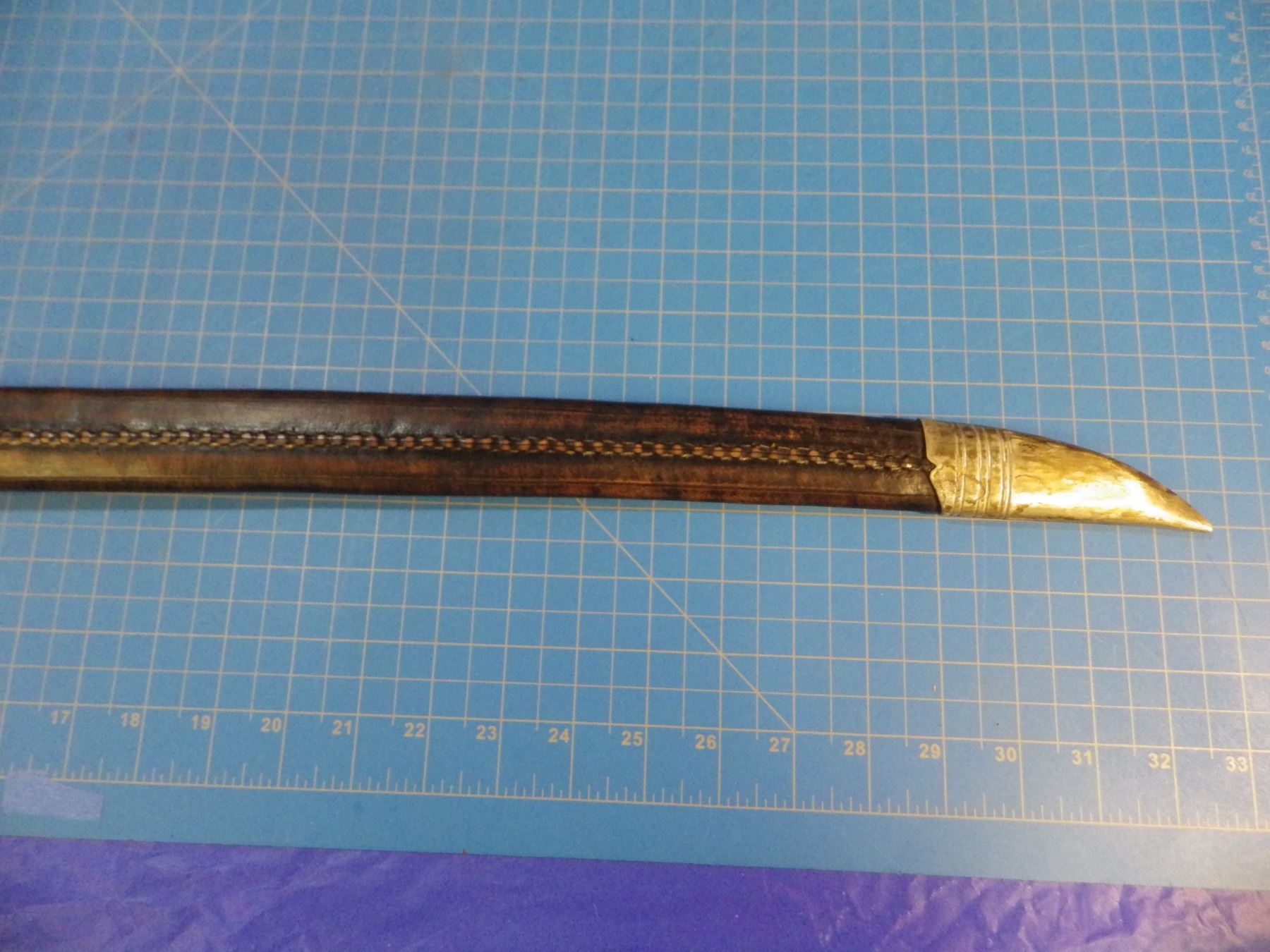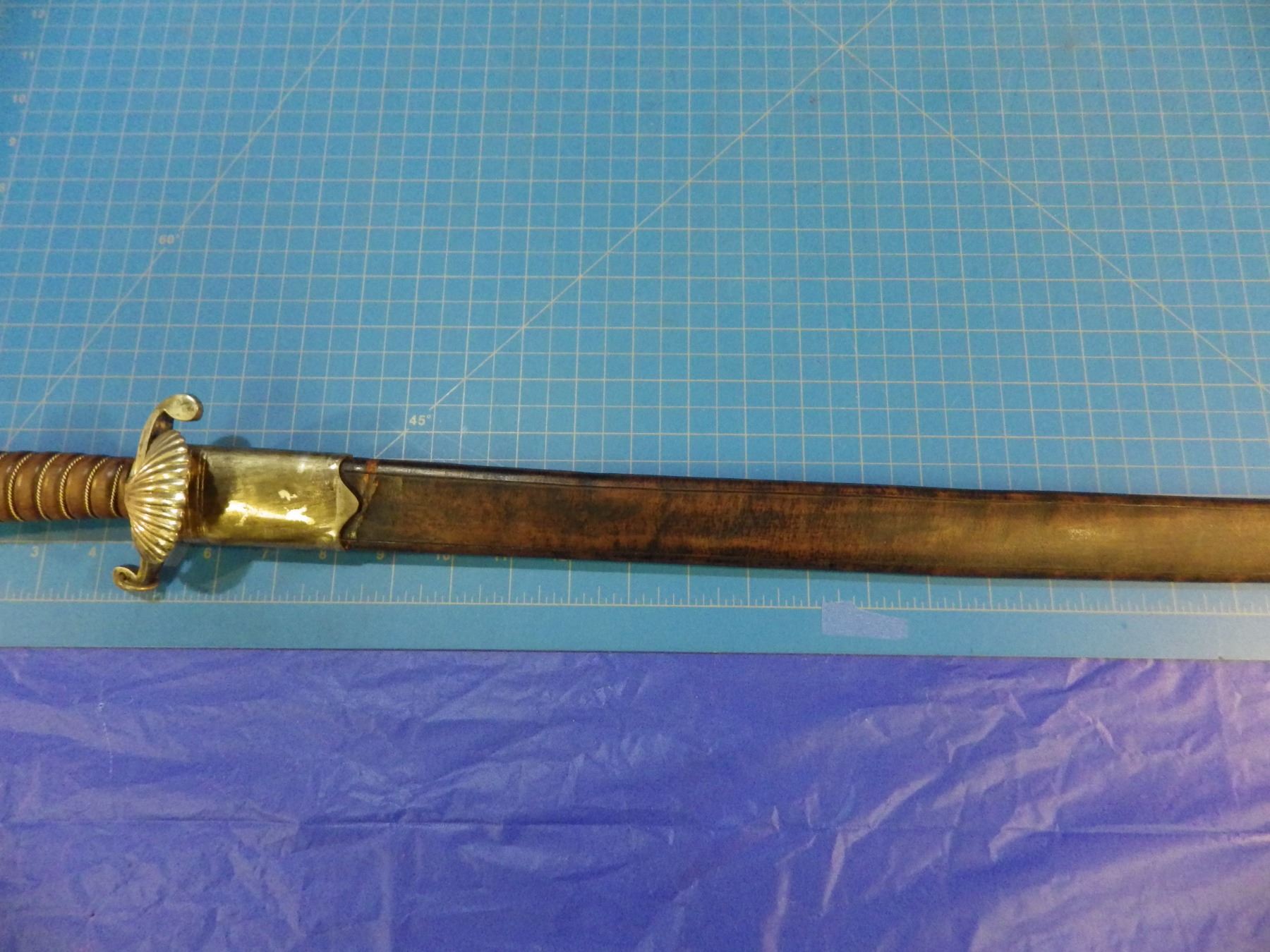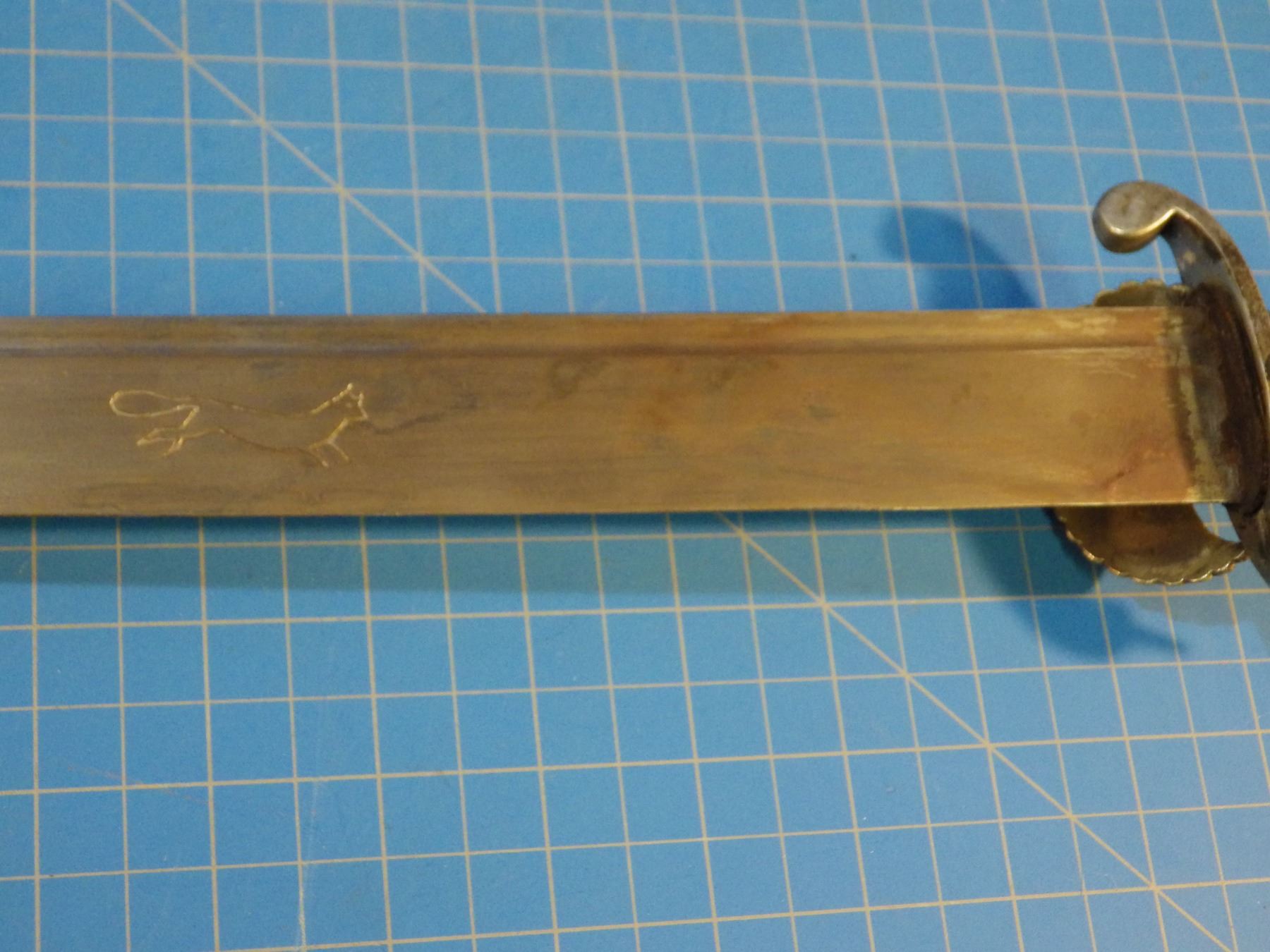 A good copy of a Revultinary War era Hanger or Hunting Sword, Scabbard altered for right hip