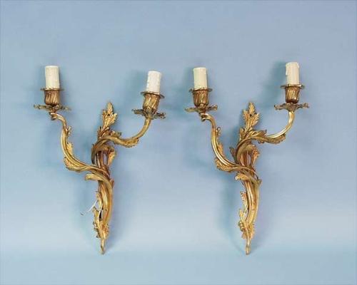 A good pair of antique French Louis XV style gilt bronze wall sconces. Circa 1870. 1400-1800