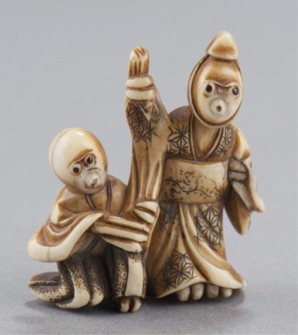 We are able to ship Netsuke from our gallery for this auction. Unfortunately we will not be able to ship any ivory to areas where its import is forbidden by law. Shipping ability and cost is contingent upon destination, insurance, and weight of the package. We charge an additional handling fee of 10/box.