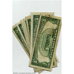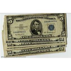 A group of eight $5 Silver Certificates, all various 1953 issues, grading Fine to VF. 8 notes...
