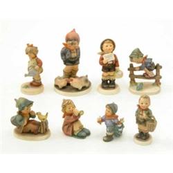 A group of eight Goebel figures, all of children with alpine costume in various activities...