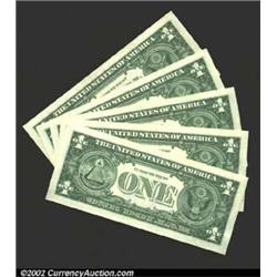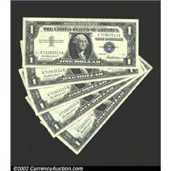 A group of five consecutively serial numbered 1957 $1 Silver Certificates, Fr-1619, all grading Gem.
