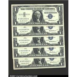 A group of five consecutively serial numbered 1957 $1 Silver Certificates, Fr-1619, all grading Gem.