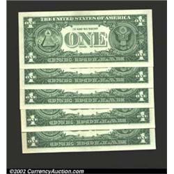 A group of five consecutively serial numbered 1957 $1 Silver Certificates, Fr-1619, all grading Gem CU. 5 notes