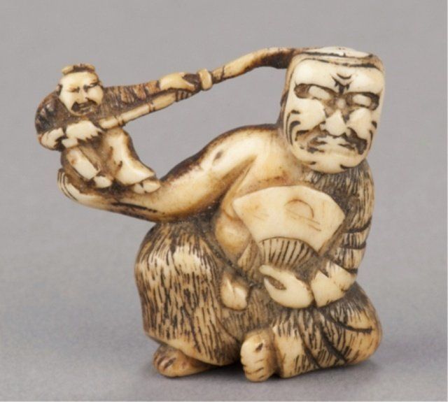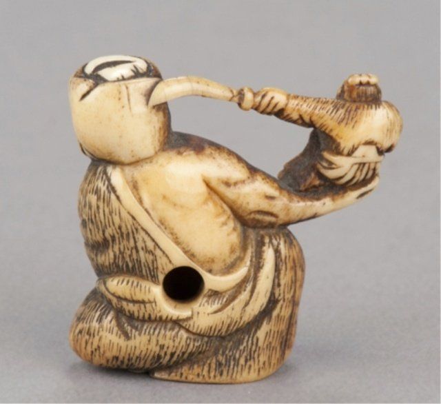 We are able to ship Netsuke from our gallery for this auction. Unfortunately we will not be able to ship any ivory to areas where its import is forbidden by law. Shipping ability and cost is contingent upon destination, insurance, and weight of the package. We charge an additional handling fee of 10/box.