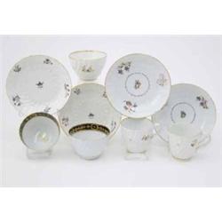 A group of late 18th century English teaware; three teabowls, two coffee cups and four saucers, a...