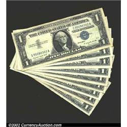 A group of nine $1 Silver Certificates, all 1957 issues, including two star notes. All grade VF to AU. 9 notes