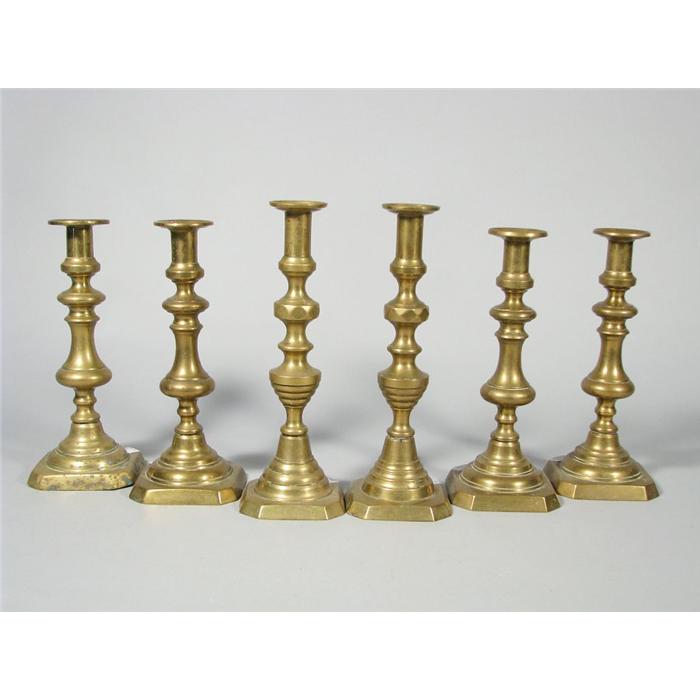 A group of six 19th Century brass candlesticks.