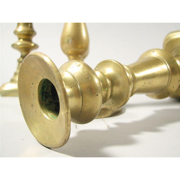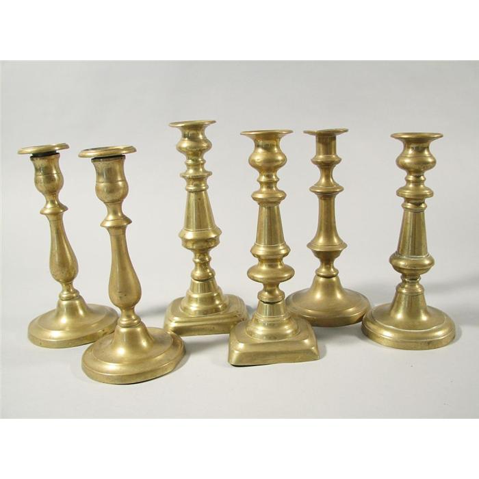 A group of six 19th and 20th Century brass candlesticks, three sets.