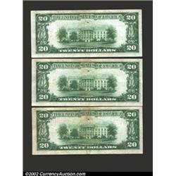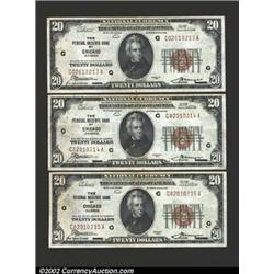 A group of three consecutively serial numbered 1929 $20 Federal Reserve Bank Notes, Fr-1870-G, all g
