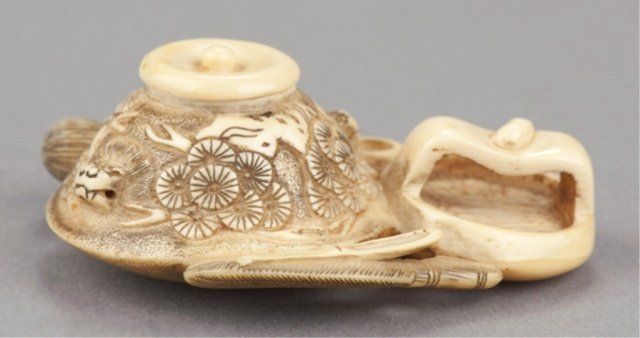 We are able to ship Netsuke from our gallery for this auction. Unfortunately we will not be able to ship any ivory to areas where its import is forbidden by law. Shipping ability and cost is contingent upon destination, insurance, and weight of the package. We charge an additional handling fee of 10/box.