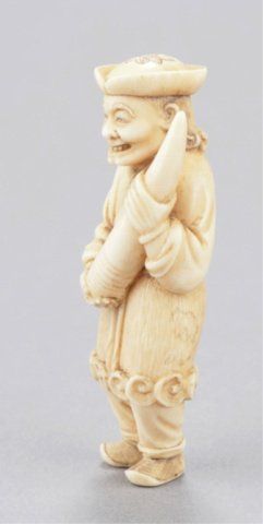 We are able to ship Netsuke from our gallery for this auction. Unfortunately we will not be able to ship any ivory to areas where its import is forbidden by law. Shipping ability and cost is contingent upon destination, insurance, and weight of the package. We charge an additional handling fee of 10/box.