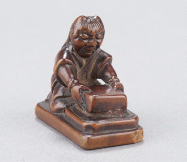 We are able to ship Netsuke from our gallery for this auction. Unfortunately we will not be able to ship any ivory to areas where its import is forbidden by law. Shipping ability and cost is contingent upon destination, insurance, and weight of the package. We charge an additional handling fee of 10/box.