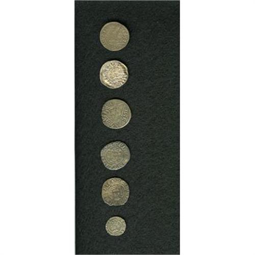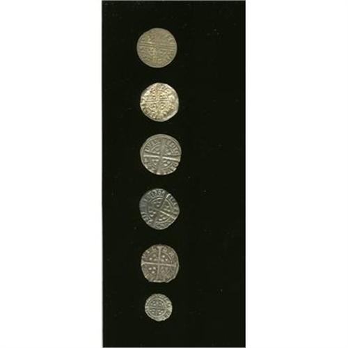 <B>A hammered lot as follows:</B></I> Henry III (1216-72) Penny, Canterbury mint, S-1367, Fine; Henry III (1247-72) Penny, S-1362, good VF; Edward I (1272-1307) Penny, London mint, S-1398, Fine; Henry VI (1422-61) 1/2 Pence, Calais mint, S-1885, porous Fine; Henry VI (1422-61) Penny, Calais mint, S-1845, about VF; and an Ireland Edward I (1272-1307) Penny, Dublin, Fine. <B>A sold as is, no return lot.</B></I>