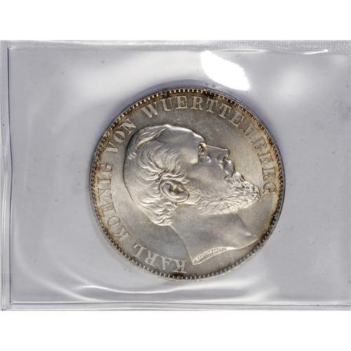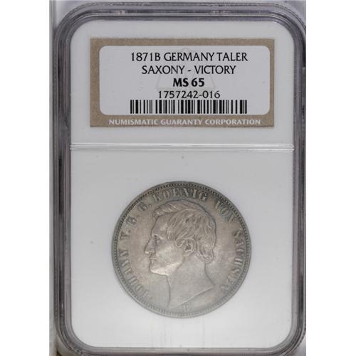 <B>A high grade Thaler pair including:</B></I> Saxony 1871B Victory Thaler, KM1230, MS65 NGC; and a Wurttemberg Victory Thaler 1871, KM620, Choice UNC.