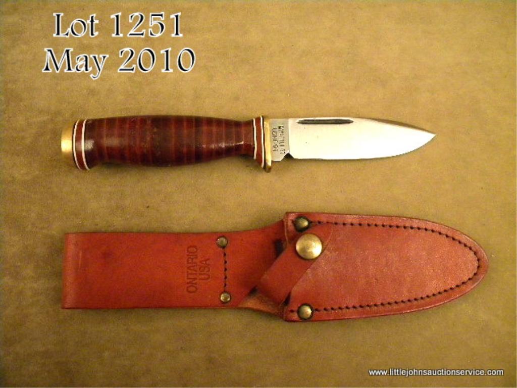 A high quality re-production USMC parachutist knife marked “Ontario, USA”; with scabbard; fine to excellent condition; a well-made and scarce knife made about 1994. Est.: $250-$400.