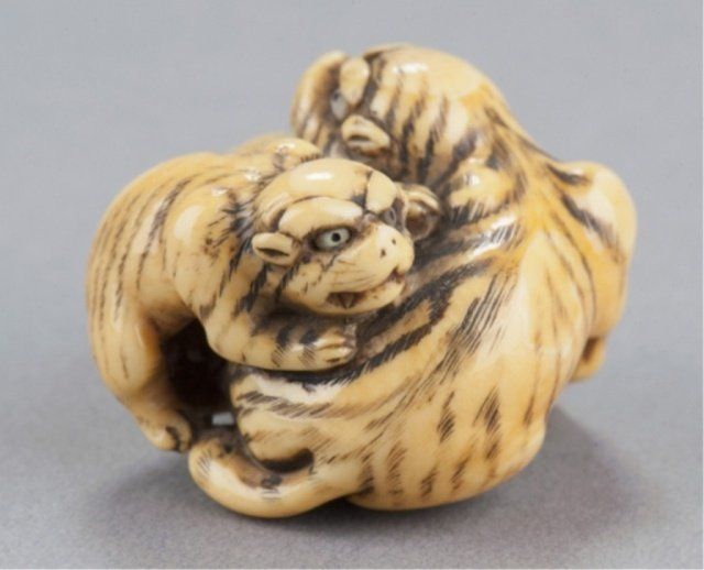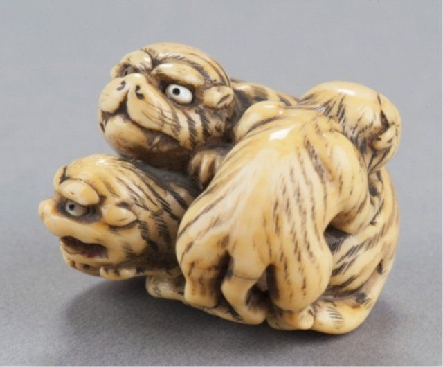 We are able to ship Netsuke from our gallery for this auction. Unfortunately we will not be able to ship any ivory to areas where its import is forbidden by law. Shipping ability and cost is contingent upon destination, insurance, and weight of the package. We charge an additional handling fee of 10/box.