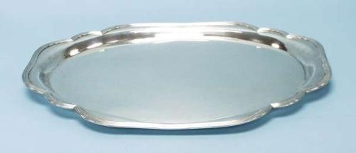 A large Austro-Hungarian silver tray with raised and grooved undulating rim. 20 1/2" x 14". Circa 1920. 1000-1200