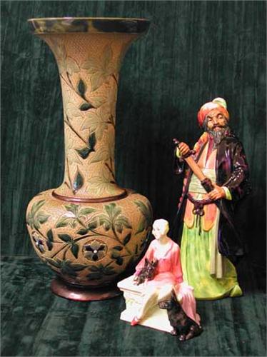 A large Doulton Lambeth vase by George Hugo Tabor, with incised decoration, dated 1880, height 38.8cm 250-350