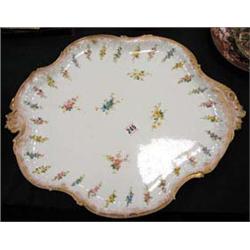 A large Royal Crown Derby shaped edge tray, decorated with flowers.