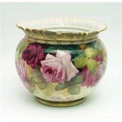 A large Royal Worcester jardiniere with fluted gilt rim, painted with pink roses, signed Sedgley, patt no.1651, diameter 11ins £800-1000