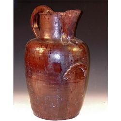 A large speckled mauve brown jug, three lancet lappets below the lip and a horseshoe handle below that on the round shouldered tapering cylindrical body, incised and sprig marks, 49cm high £150-200
