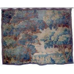A late 17th century Flemish verdure tapestry fragment, woven with a house in a wooded landscape, 4ft.8ins x 5ft. 10 ins. £300-400