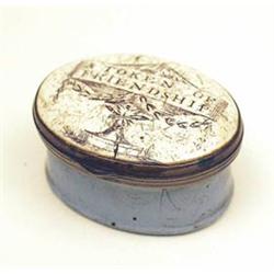 A late 18th century English enamel patchbox inscribed 'A Token of Friendship', 1.75ins £80-100