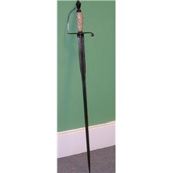 A late 18th century small-sword or spadroon, the colichemard blade with writhen ivory grip, topped by a facetted steel urn, the half round guard centred and pierced with a diamond, 88cm long £150-250