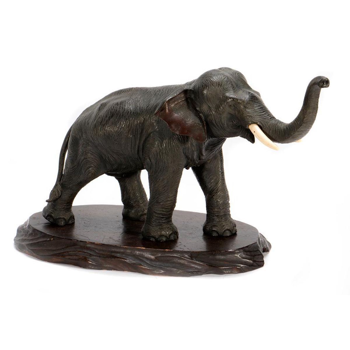 Late 19th-/early 20th-century Japanese bronze sculpture of an elephant, 11 1/2 inches in height