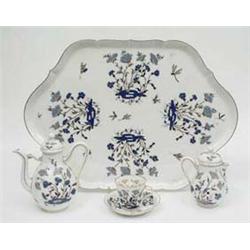 A late 19th century Sevres 5-piece part coffee service with blue enamel floral decoration, signed Merigot, S50, tray 18.5ins £100-150