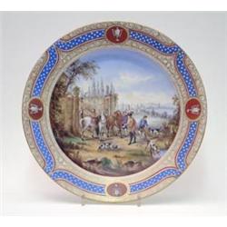 A late 19th century Vienna porcelain plate painted with a named scene 'Aufbruch zur Fagd' after Wouvermann, 12ins £150-200