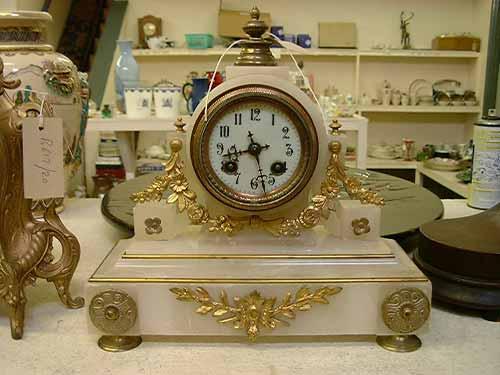 A late 19th century alabaster Continental mantel timepiece having eight-day drum movement, H 28cms W 28cms £80-100