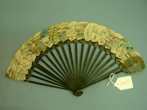 A late 19th century chinoiserie-decorated and lacquered fan, L 23cms...