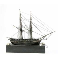 A late 19th century ship model in glazed case, the Man-O-War with two masts, rigging and brass ca...
