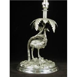 A late 19th century silver plated emu table lamp on a circular base by James Deakin & Son (later fitting), 35cm high Est. 250/350